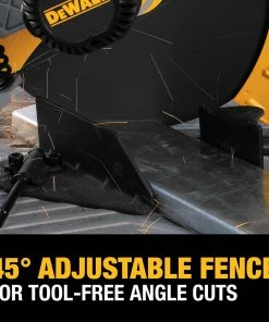 Patented Quick-Fence(TM) tool-free, 45° adjustable fence allows for fast and accurate angle cuts without using a wrench