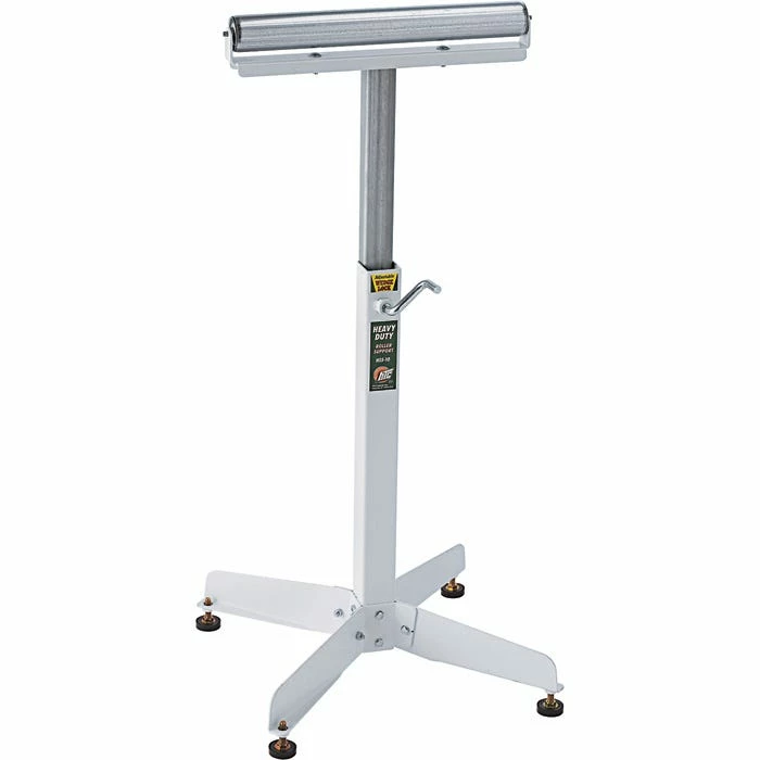 The HSS-10 roller stand features a 350lb capacity, making it just right for dozens of applications. The galvanized roller measures 16″ and is 2″ in diameter. The wedge lock inner support tightens under load, so you never have to worry about your material slamming down to the lowest setting. Adjustable leveling feet finish a super stand.