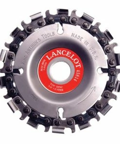 The 14 tooth Lancelot (model 45814) chain saw cutter fits most 4 1/2″ (115mm) and 125mm European angle grinders with 5/8″(16mm) center holes. More aggressive than the 22 tooth and leaves a coarser finish but you’ll be amazed at the smooth finish. Excellent for rapid wood removal, cutting and general shaping.