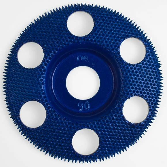 Flat Blue Coarse 90 Grit for rapid removal with smooth coarse finish on flat surfaces. Holey Galahad is engineered to “open a window to your work” – no stopping to lift the grinder and check your progress.