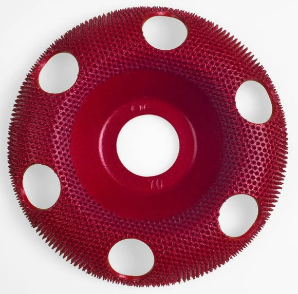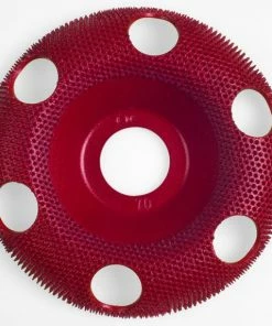 Red Round Medium Grit Disc for rapid removal with medium to fine finish on contoured or concave surfaces.