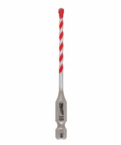 The MILWAUKEE® 1/8″ x 2″ x 3-1/2″ SHOCKWAVE™ Carbide Hammer Drill Bit uses sharpened carbide to deliver up to 5x longer life in concrete and up to 2x faster drilling into masonry material. Engineered with a precision ground tip, these bits deliver faster starts and less walking in concrete, brick, block, and masonry. The wide flute design removes dust faster, reducing heat and delivering more holes per charge. These carbide-tipped drill bits have a 1/4″ Hex Shank for versatility and are compatible with both impacts and hammer drills.