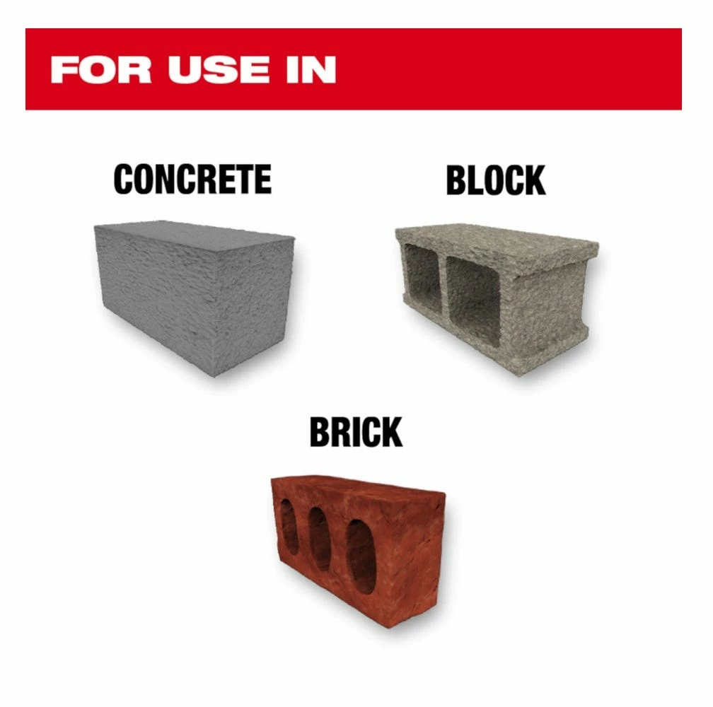 - Sharpened carbide edges for faster starts in concrete, brick, and block
