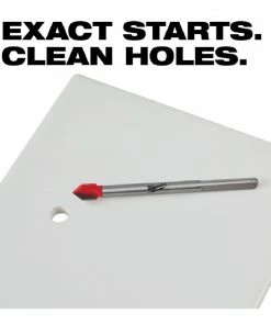 The Milwaukee 5/16 in. Glass and Tile Drill Bit features an exact start tip for clean holes and minimal bit walking in glass and ceramic tile. Engineered with sharpened carbide, Milwaukee Glass and Tile Bits provide faster tile drilling than standard glass and tile bits. These bits are designed with a reinforced carbide head for increased durability when high-speed drilling into tile and glass. They’re specifically designed for drilling holes in glass and ceramic tile with drill-drivers only. These drill bits are not recommended for use on porcelain tile.