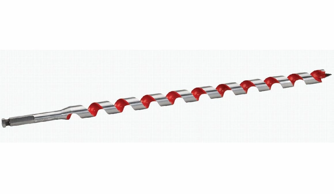 The Milwaukee® 7/8 in. x 18 in. Ship auger bit drills through up to 2X the nails of competitive auger bits without needing re-sharpening. Drill into clean or nail-embedded wood with confidence when installing Romex wire, PEX water lines, rebar, bolts, and rope in piers, playground equipment and landscaping. The flutes are wider for maximum chip removal, even in deep holes. The polished and coated flute finish means chips won’t stick to the bit, even when drilling in material that contains sap or glue. The through-center cutting design creates a more solid striking point against nails compared to the competitions’ ahead-of-center and behind-center designs. The longer shaft length makes it easy to drill deeper or overhead without an extension.