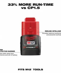 The M12 Charger accepts all M12 batteries, so you will always be prepared and productive. The career communicated directly with the battery pack to monitor cell voltage, temperature and charge statues to ensure a full charge. Power up your compact batteries in 30-minutes and extended capacity batteries in 60-minutes, without the need for extra charges on the jobsite. The Milwaukee 48-11-2420 M12 REDLITHIUM 2.0 provides up to 2X more run-time, 20% more power and 2X more recharges than a standard Lithium-Ion battery. REDLITHIUM 2.0 also delivers best-in-class performance in extreme job-site conditions. With Milwaukee durability built into each pack, the REDLITHIUM 2.0 battery operates cooler and performs in climates below -18 degree C/0 degree F with fade free power.