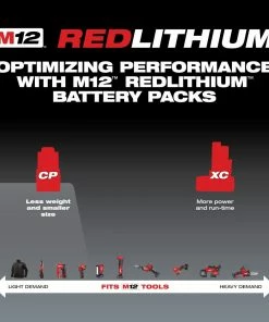 - M12 REDLITHIUM battery packs delivers long life and run time with fade-free power