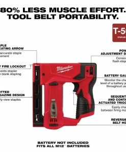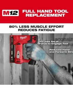 - Includes: M12 12-Volt lithium-ion cordless 3/8 in. crown stapler (tool-only)