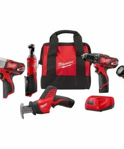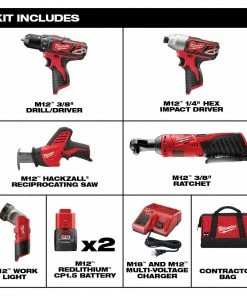 The 2498-25 M12™ 5-tool Combo kit includes the M12™ 3/8 in. drill/driver (2407-20), M12™ 1/4 in. hex impact driver (2462-20), M12™ HACKZALL® reciprocating saw (2420-20), M12™ 3/8 in. ratchet (2457-20) and M12™ LED workshell (49-24-0146). The innovative M12 cordless system provides the power and torque required for professional applications, in a size that reaches the tightest and toughest places. Powered by Red Lithium, the M12 cordless lithium-ion system offers unmatched power, speed and tool belt portability.
