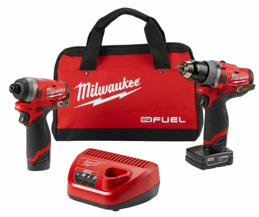The 2598-22 M12 FUEL Brushless 2-Tool Combo Kit is the Most Capable and Most Compact 12-Volt Hammer Drill Driver and Impact Driver Combo Kit on the market. Included is the M12 FUEL Hammer Drill Driver (2504-20), the Most Capable, Lightest Weight and Most Compact 12-Volt Hammer Drill Driver in the market. At only 6.6 and 2.8 lbs. of weight it is the best Hammer Drill Driver to use in compact spaces. It delivers the power to do a wide variety of applications at 1700 RPMs and 350 in./lbs. of torque. Also included, the M12 FUEL Hex Impact (2553-20), the Fastest Driving Speed, Most Compact with 4- Mode Drive Control Impact Driver in the market. At 3,300 RPM the impact drives screws over 20% faster than competitors. At 5.1 in. L it allows for unmatched access in tight spaces. The 4-Mode DRIVE CONTROL provides greater control over output speed and power for greater versatility by delivering 0-1,300 RPM in Mode 1, 0-2,400 RPM in Mode 2 and 0-3,300 RPM in Mode 3. Mode 4 is Self-Tapping Screw Mode which is designed to reduce walking when starting self-tapping screws as well as reduce over-drive, breaking and stripping out screws.
