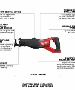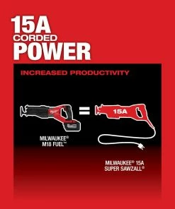 - Powerstate brushless motor: purposely built for the M18 fuel super sawzall to generate the power and performance of a 15 Amp corded reciprocating saw