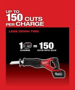 The Milwaukee M18 FUEL SUPER SAWZALL generates the power of a 15 Amp Corded Reciprocating Saw, Faster Cuts than the legendary Milwaukee 15 Amp AC SUPER SAWZALL, and Up To 150 Cuts in 2×12 SPF per charge. Designed to perform in the toughest applications the M18 FUEL SUPER SAWZALL combines Milwaukee’s legendary performance and durability with the portability of the M18 platform. The POWERSTATE Brushless Motor Provides 3,000 SPM and higher speeds under load for corded cutting performance. REDLINK PLUS intelligence ensures maximum performance and protection from overload, overheating and over discharge. The M18 RedLithium High output HD12.0 battery delivers unmatched run-time in all applications. The 1-1/4 in. stroke length removes more material with each stroke and selectable On/Off Orbital action provides aggressive cuts in wood and smooth cuts in metal. Variable speed trigger and 5 speed dial provide maximum speed control for any application. The QUIK-LOK blade clamp allows for tool less blade changes and a rafter hook provides a convenient way to store the saw between cuts.