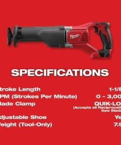 2621-20 Sawzall® M18™ Cordless LITHIUM-ION Reciprocating Saw – Bare Tool