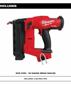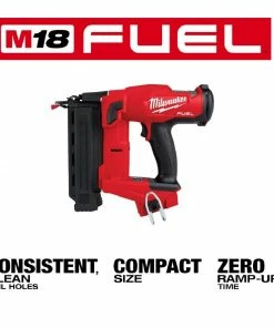 Our M18 FUEL™ 18ga Brad Nailer delivers peak productivity at your jobsite, providing you with unmatched nailing performance without the hassle of a compressor and hose. Leveraging our nitrogen air spring mechanism, the Brad nailer allows you to consistently sink nails to the proper depth in hard and soft woods while leaving clean nail holes matching the head of the nail. The combination of our POWERSTATE™ Brushless Motor and REDLINK PLUS™ Intelligence delivers you with unmatched fire rate with zero ramp-up time keeping you efficient throughout your day. Additionally, the cordless brad nailer operates using our REDLITHIUM™ Batteries (not included) and sealed compressed nitrogen to drive each nail, completely eliminating the cost of gas cartridges and maintenance associated with competitors’ nailers. The 18 gauge nailer is compact in size, and very lightweight, providing you with unmatched access into tight spaces and limiting your fatigue throughout your day. The M18 FUEL™ 18ga Brad nailer delivers the pneumatic performance that professional carpenters and remodelers expect with the freedom and convenience of cordless.