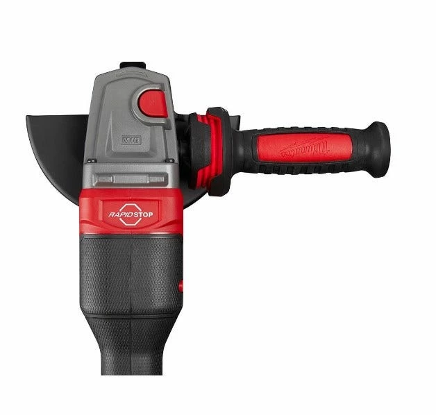 The Milwaukee M18 FUEL 4-1/2 in. – 6 in. Braking Grinder, Paddle Switch, No-Lock is the highest performing small angle grinder. It generates the power of a 13 Amp corded grinder, brakes all accessories under 3 seconds and has 6 in. grinding capacity. The POWERSTATE Brushless Motor provides users with 9,000 RPM and the power equivalent of a 13 Amp corded grinder, delivering industry-leading performance. REDLINK PLUS intelligence ensures maximum performance and protects the angle grinder from overload, overheating and over discharge. The Rapid Stop Brake feature stops all accessories in under 3 seconds. Providing users high performance, advanced ergonomics and legendary durability, the M18 FUEL 4-1/2 in. – 6 in. Braking Grinder is designed to complete the toughest grinding, surface preparation and cutting applications with all 4-1/2 in. – 6 in. accessories. The M18 REDLITHIUM HIGH OUTPUT XC6.0 Battery delivers users with more material removed per charge and unmatched run-time in all applications. Tool-free accessory changes using the FIXTEC nut and tool-free guard adjustments mean users will experience less downtime as they work. The cordless angle grinder’s grinding wheel is sold separately.