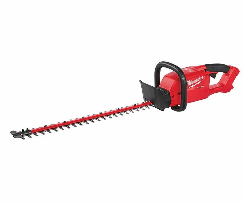 The M18 FUEL™ Hedge Trimmer has the power to cut ¾” branches, cuts up to 30% faster, and provides up to 2 hours of run-time per charge.  Designed to meet landscape maintenance professional needs, the handle placement and weight distribution provide the best combination of balance and control.  The trimmer features a slider-crank mechanism and all-metal gear case providing unmatched durability and longer life.  The 24” blade trims more material in a single pass, increasing reach and productivity.  The blade tip guard prevents damage to the property and the blades.  The M18 FUEL™ Hedge Trimmer is fully compatible with 150+ solutions on the M18™ system.