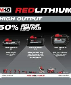 - Includes: 2 M18 REDLITHIUM HIGH OUTPUT XC 6.0 Ah battery packs