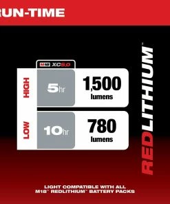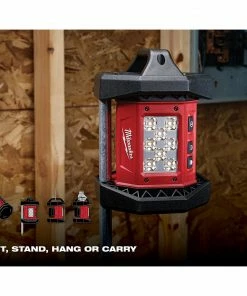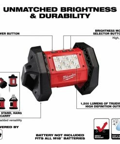 The Milwaukee M18 LED Flood Light delivers up to 30% brighter light output than corded 250W halogen lights. Designed to illuminate large workspaces on the jobsite, the cordless flood light uses 8 high-quality LEDs to provide 1,100 lumens and up to 1,300 lux. It’s powered by the M18 REDLITHIUM battery for up to 8 hours of runtime on a single charge. With its roll cage design and impact-resistant, replaceable lens, it stands up to the toughest working conditions. This compact flood light features an octagonal shape so the light may be used at multiple angles. The versatile hanger provides hands-free use in a variety of applications. The light carries a limited lifetime LED warranty.