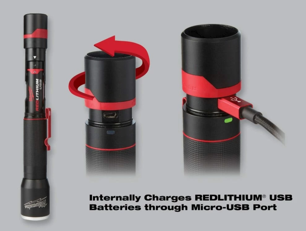 - Can be recharged in the flashlight via Micro USB or swapped out with additional REDLITHIUMâ„¢ USB batteries