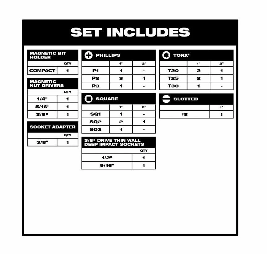 The Milwaukee SHOCKWAVEâ„¢ 18 Piece Impact Driver Bit Set is engineered to be the Most Durable, Best Fitting Driver Bits on the market.