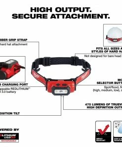 Our REDLITHIUM™ USB Hard Hat Headlamp offers you high output, secure attachment and is powered by REDLITHIUM™ USB. The hard hat light delivers professionals 475 lumens of TRUEVIEW™ High Definition Output and is capable of all-day runtime, more recharges, and 3X faster charging via USB. It is optimized for use with hard hats with its slip-resistant strap and clips for easy and secure attachment. The water, dust, and drop resistant body and lens allow it to withstand the toughest conditions. Get maximum control over output, beam coverage, and runtime with five different modes, flood, spot and spot/flood beam patterns, and up to 33 hours of runtime. The REDLITHIUM™ USB Hard Hat Headlamp is powered by the REDLITHIUM™ USB 3.0AH Battery, providing all-day run-time, more recharges, and 3x faster charge time. The MILWAUKEE® REDLITHIUM™ USB Battery can be recharged in the flashlight via Micro USB or swapped out with additional REDLITHIUM™ USB Batteries for virtually no downtime. The Milwaukee REDLITHIUM™ USB Hard Hat Headlamp is covered by a limited lifetime warranty.