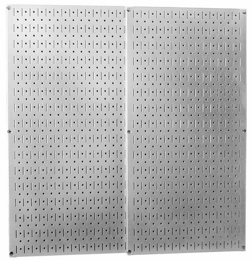 This Galvanized Steel Pegboard Pack offers maximum tool board storage versatility and strength. The two 16in x 32in metal pegboard panels combine for a total tool storage area of 32in x 32in, or over 7 Square Feet of pegboard storage space. These attractive Metal Pegboard Panels are also great for heavy duty pegboard storage needs due to their 20 gauge galvanized steel construction which makes them over 10 times stronger than conventional pegboard creating an industrial grade tool storage solution. The Wall Control metal pegboard panels offer both slots and holes to accept slotted tool board accessories as well as conventional 1/4in peg board hooks making this pegboard extremely versatile by offering the user multiple options with pegboard hooks, brackets, shelves, and general toolboard and pegboard supplies selection.